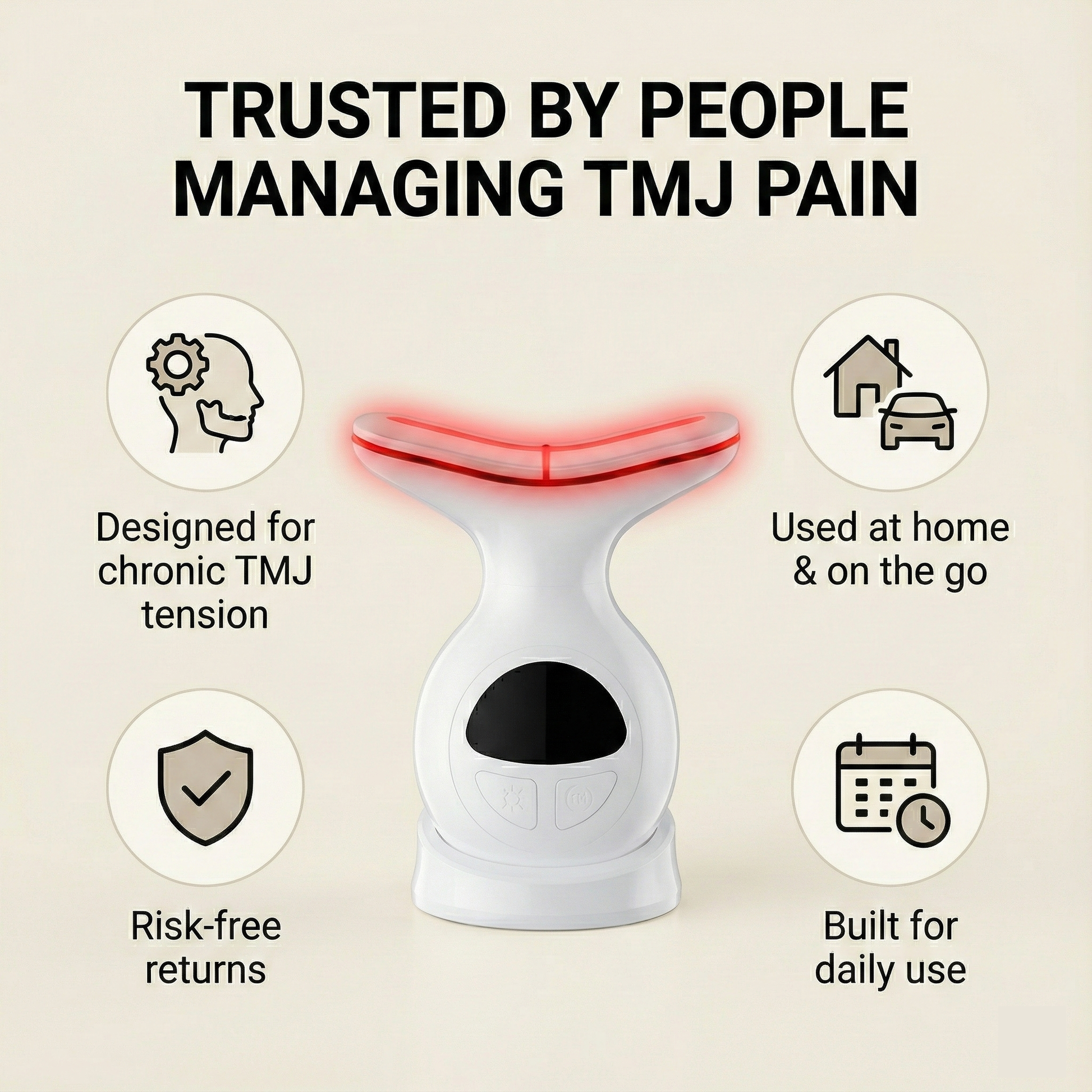 NeuroEase TMJ Reliever is used by people with both recent and long-standing TMJ pain symptoms. While results vary, many long-term sufferers report noticeable relief during flare ups and improved comfort with consistent use. It is especially helpful for people who have already tried braces, physical therapy, or other treatments and need something accessible for daily management.